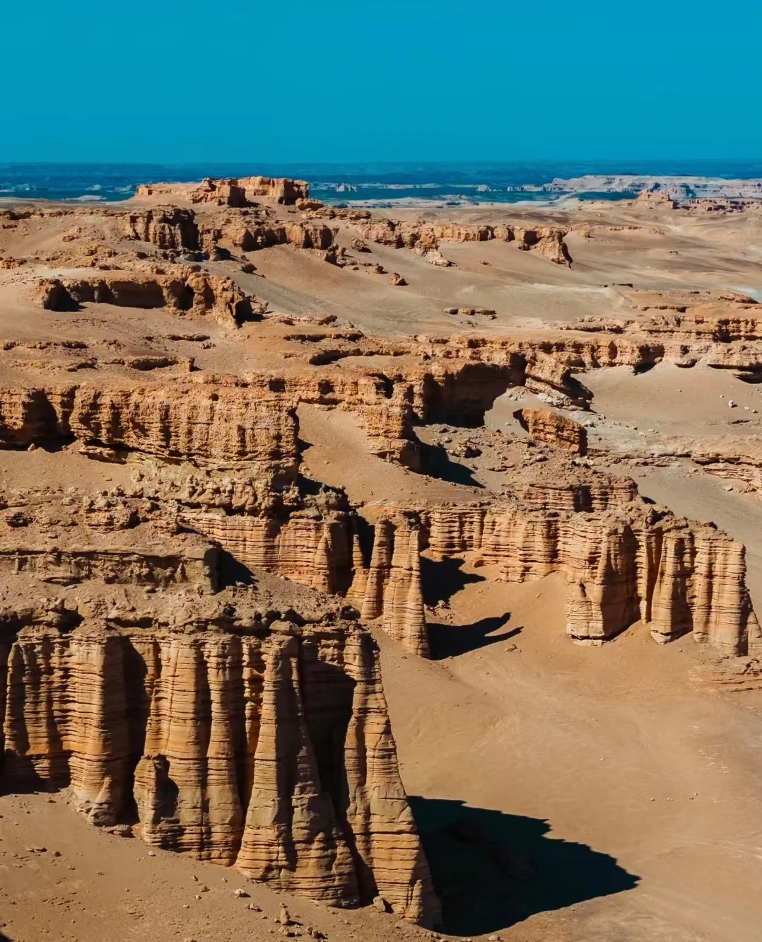 当您深入其间,放眼望去,巨大而密集的雅丹群在风蚀作用下幻化成无数神秘的城堡、巨兽与舰队,它们静静矗立于天地之间,在日出日落的金光渲染下,上演着光影交织的磅礴戏剧。