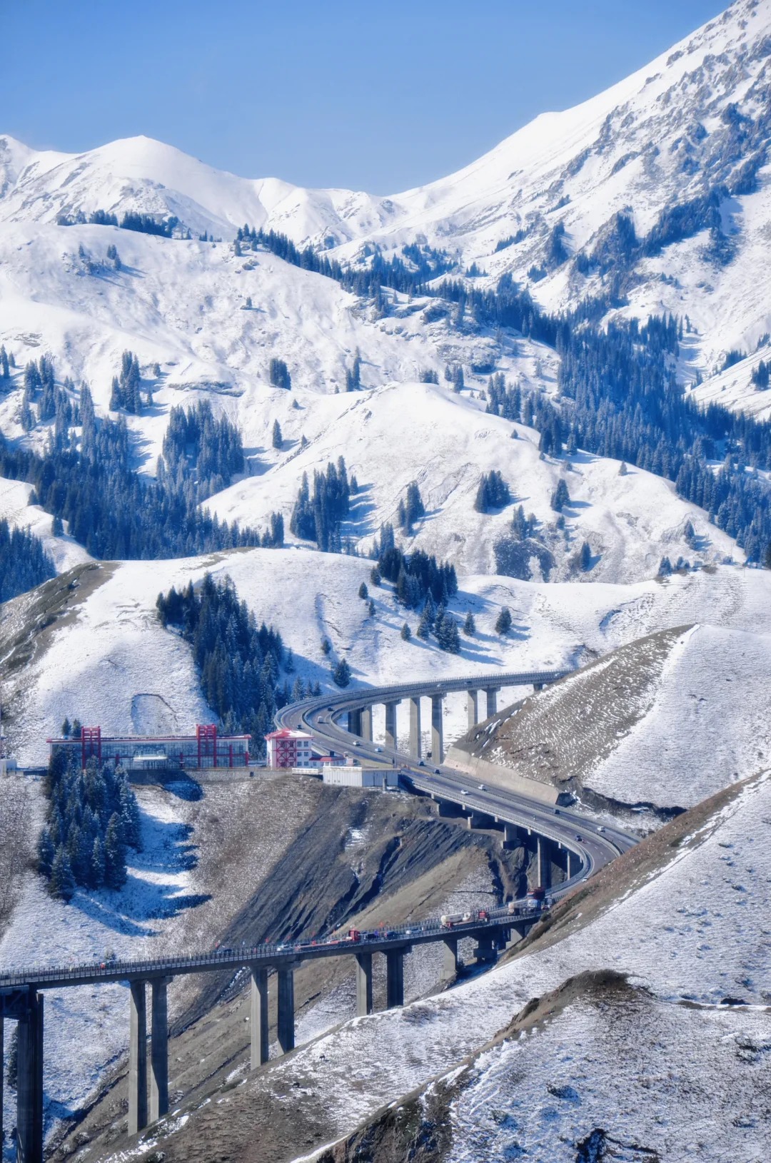 果子沟大桥:途经果子沟大桥,可拍摄这座“伊犁第一景”在雪山峻岭间的雄伟姿态。