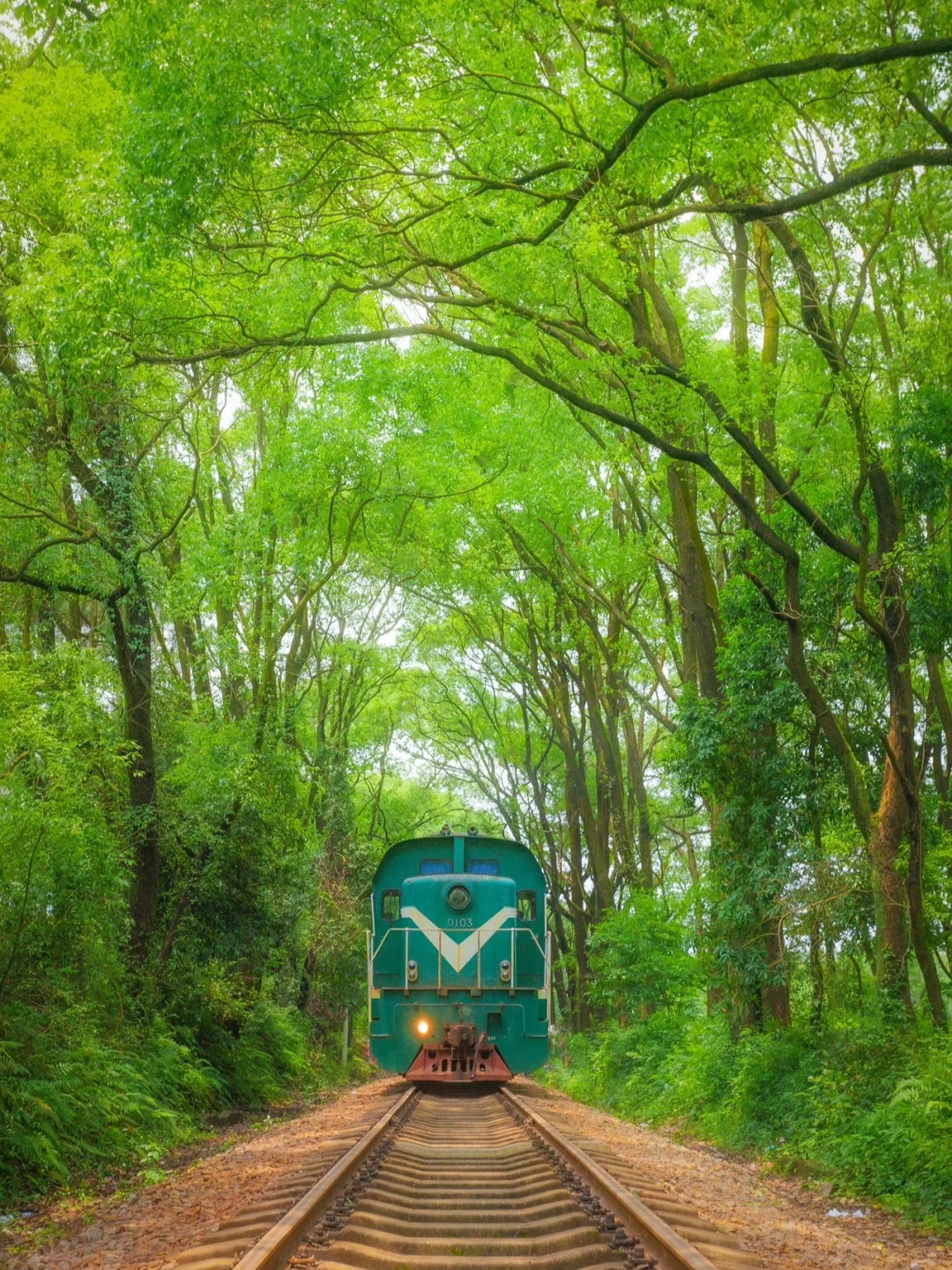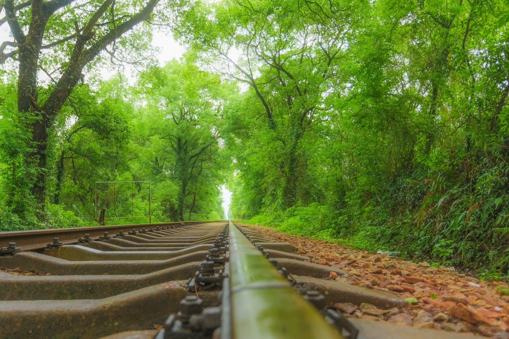 这是一段被自然接管的废弃铁路隧道,藤蔓为洞口编织出随季节变幻的画框。阳光斜射入内,形成强烈的明暗对比与纵深感,是拍摄氛围感人像的绝佳舞台。请您在创作时注意脚下安全,利用这天然的光影剧场,捕捉充满故事性的瞬间。