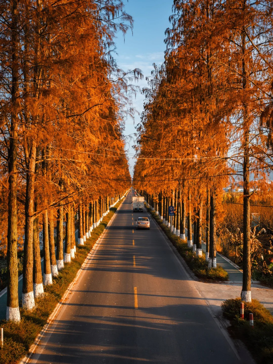 2、前往拍摄最美乡村公路,拍摄落羽杉美景;