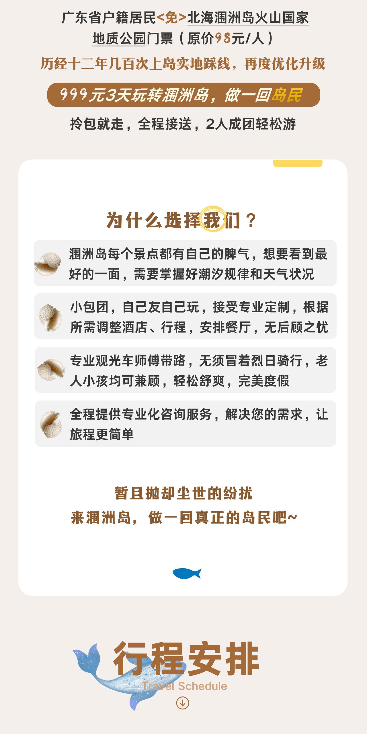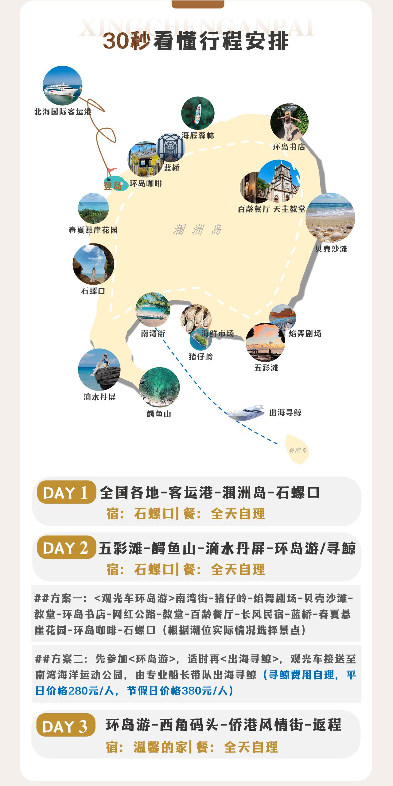 注:报名当地集散套餐可在14:10 前到达北海站或14:30在北海国际客运港码头集合