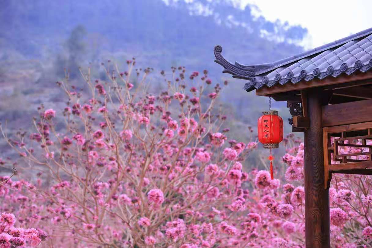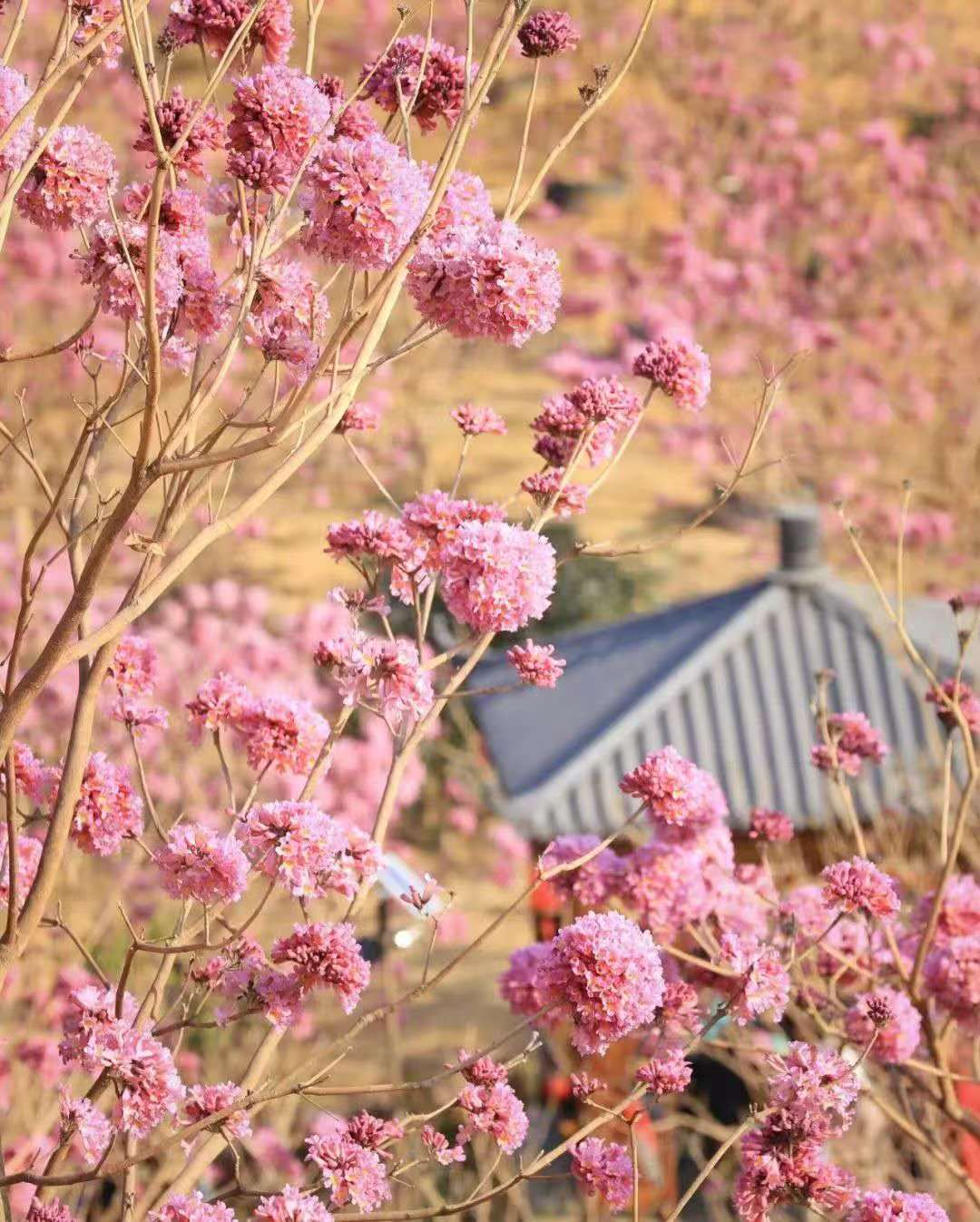 花海人像创作:在占地数百亩、超过6000棵紫花风铃木构成的粉色梦境中,轻松拍出氛围感大片。
