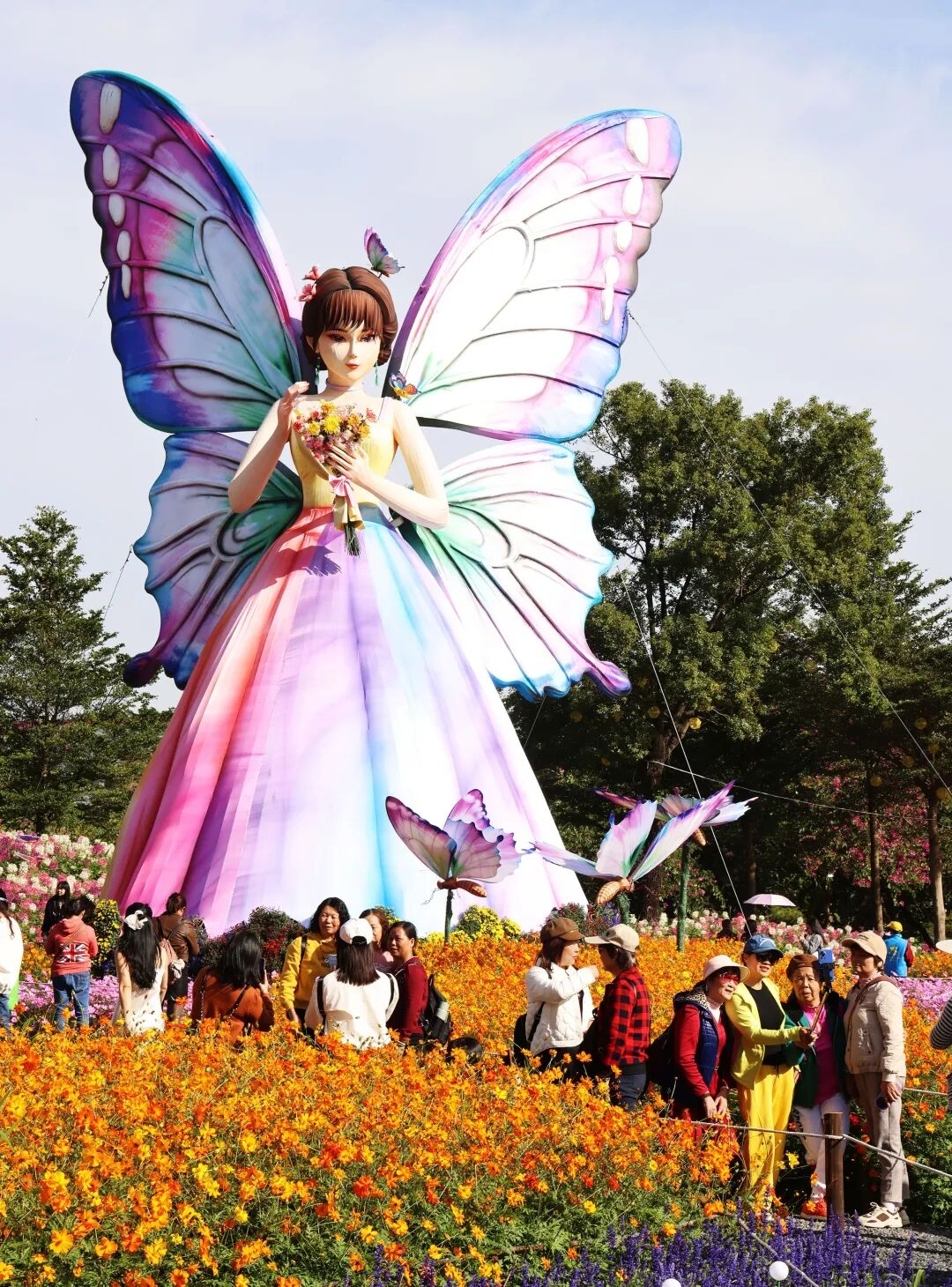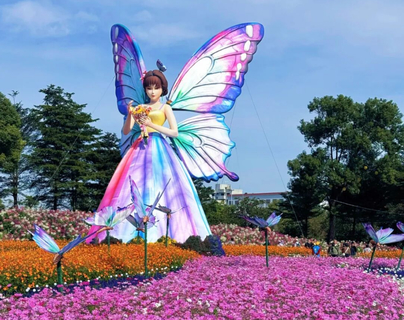 国家级非遗菊花会(主题“潮起湾区 花香菊城”)创新呈现科幻机甲、AR互动灯光秀,如25米长“菊花女神”夜间光雕、花影星舰等未来感造景;八大主题展区含菊花迷宫、夜光长廊、万盆彩菊拼贴造型,适合拍摄动态人像及微距特写稀有品种。