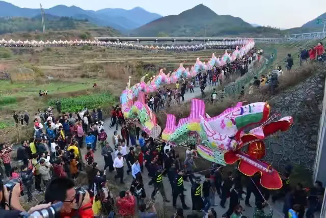 姑田的大龙绝对称得上“天下第一龙”。龙主要是用竹子和纸做成。龙腰分别由各家各户单独做好,在游龙前,拼接完成。