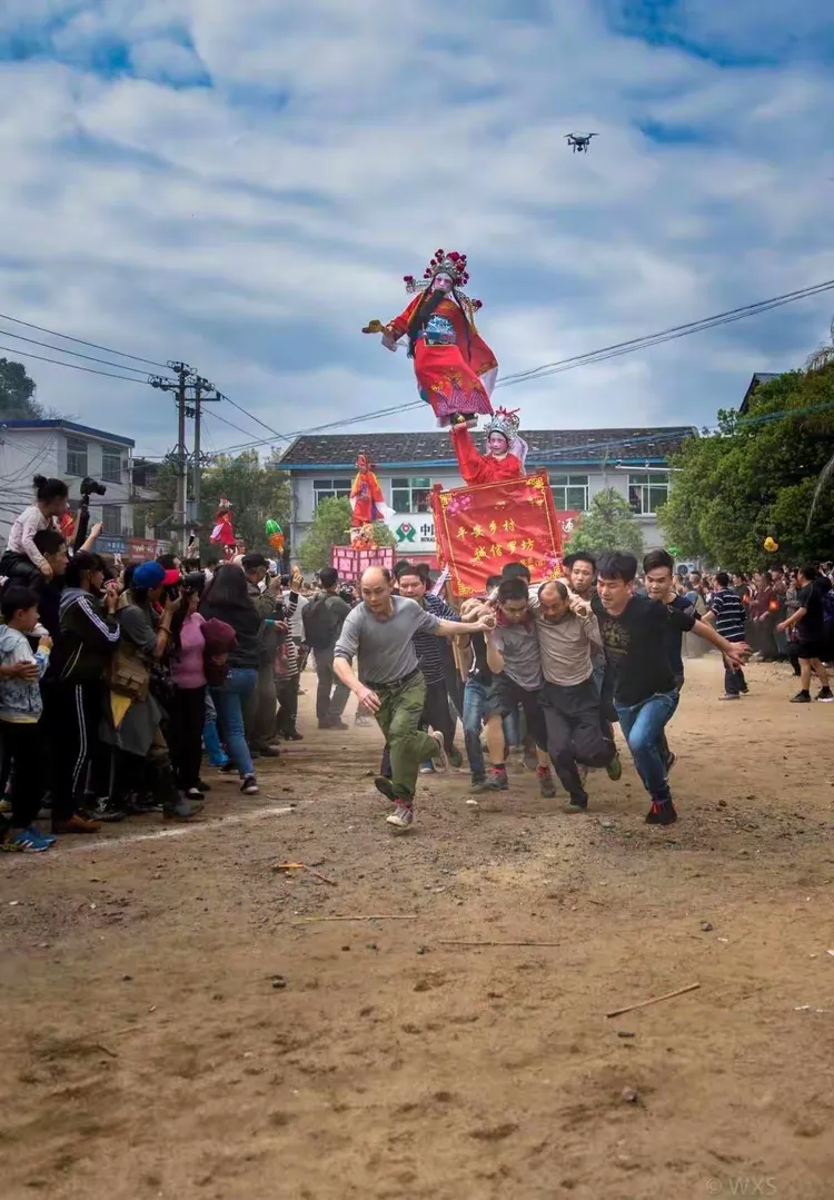 是当地人每年正月十五举办的大型民俗竞技活动,被誉为“山区的狂欢节”。相传在明朝,罗坊镇常闹旱、涝两灾,当地百姓把流传北方的“走古事”移植罗坊,以祈求风调雨顺、国泰民安。