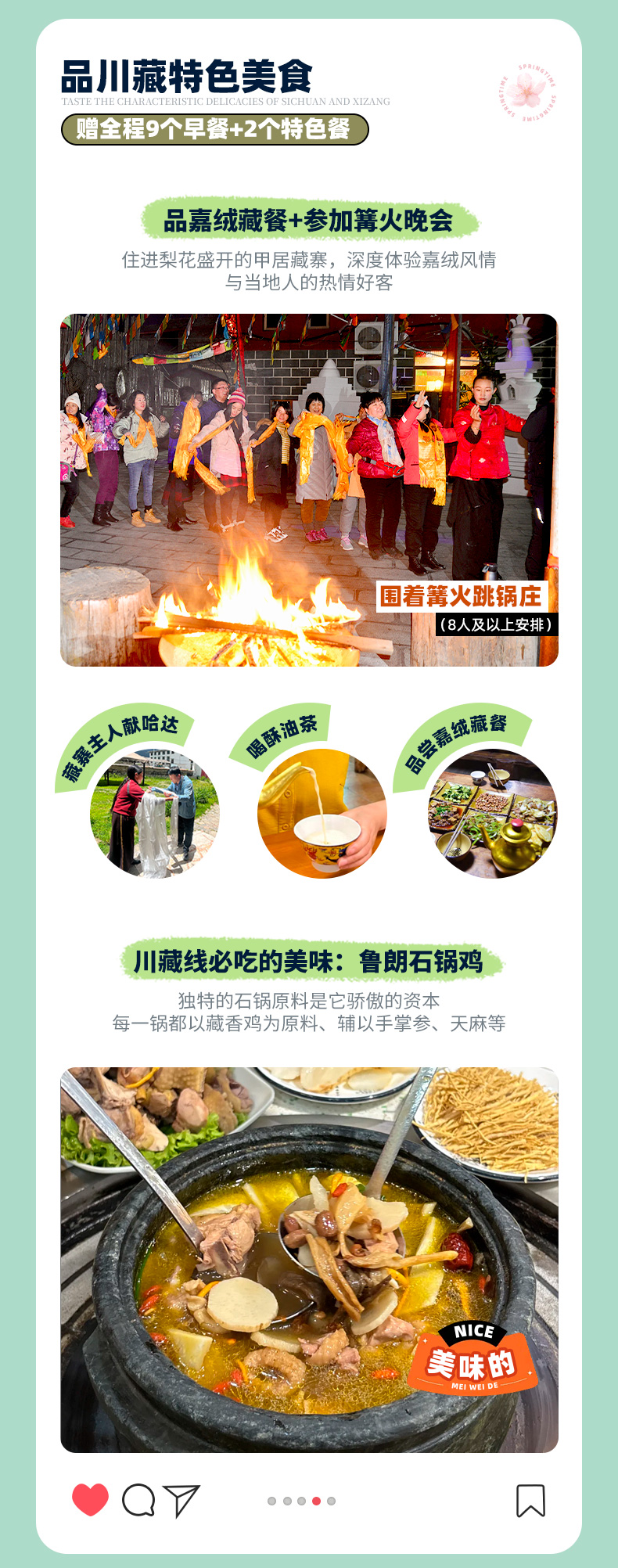 3、全程10个早餐+2个特色餐(嘉绒藏餐+鲁朗石锅鸡),如队员另外点餐,需自己支付费用;
