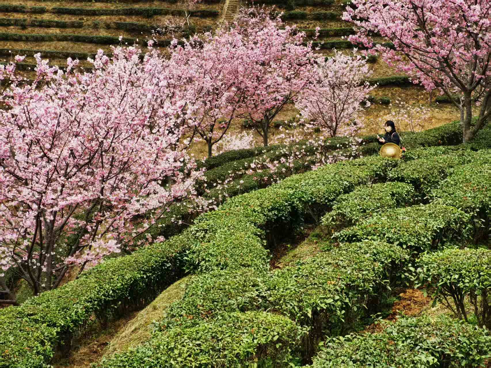 樱花盛放时,春天便住进了茶田