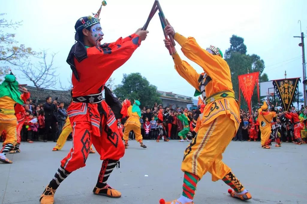 普宁英歌舞被誉为“中华战舞”,是一种融合舞蹈、南拳套路、戏曲演技的民间艺术,已有300多年历史。其表演内容多取材于《水浒传》等英雄故事,动作刚劲有力,节奏鲜明,展现梁山好汉的豪迈气概。