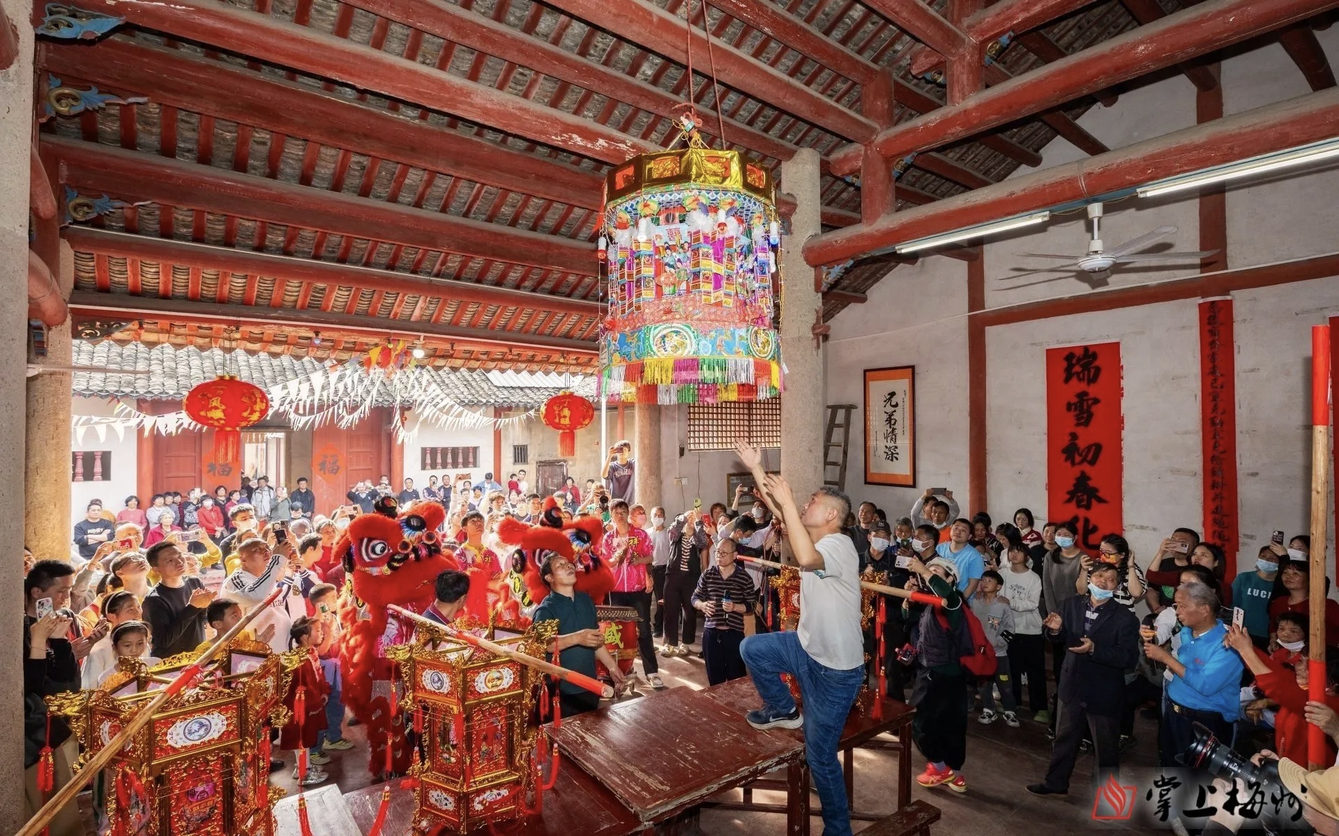 拍摄英歌舞,关键在于表现其力量感与现场感染力。建议使用高速连拍模式捕捉舞者跳跃、旋转的瞬间动态,快门速度建议1/500秒以上。低角度仰拍可强化舞者的威武气势,特写镜头则能记录绘有梁山好汉脸谱的丰富表情和汗水挥洒的细节。