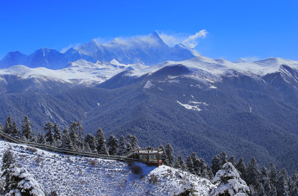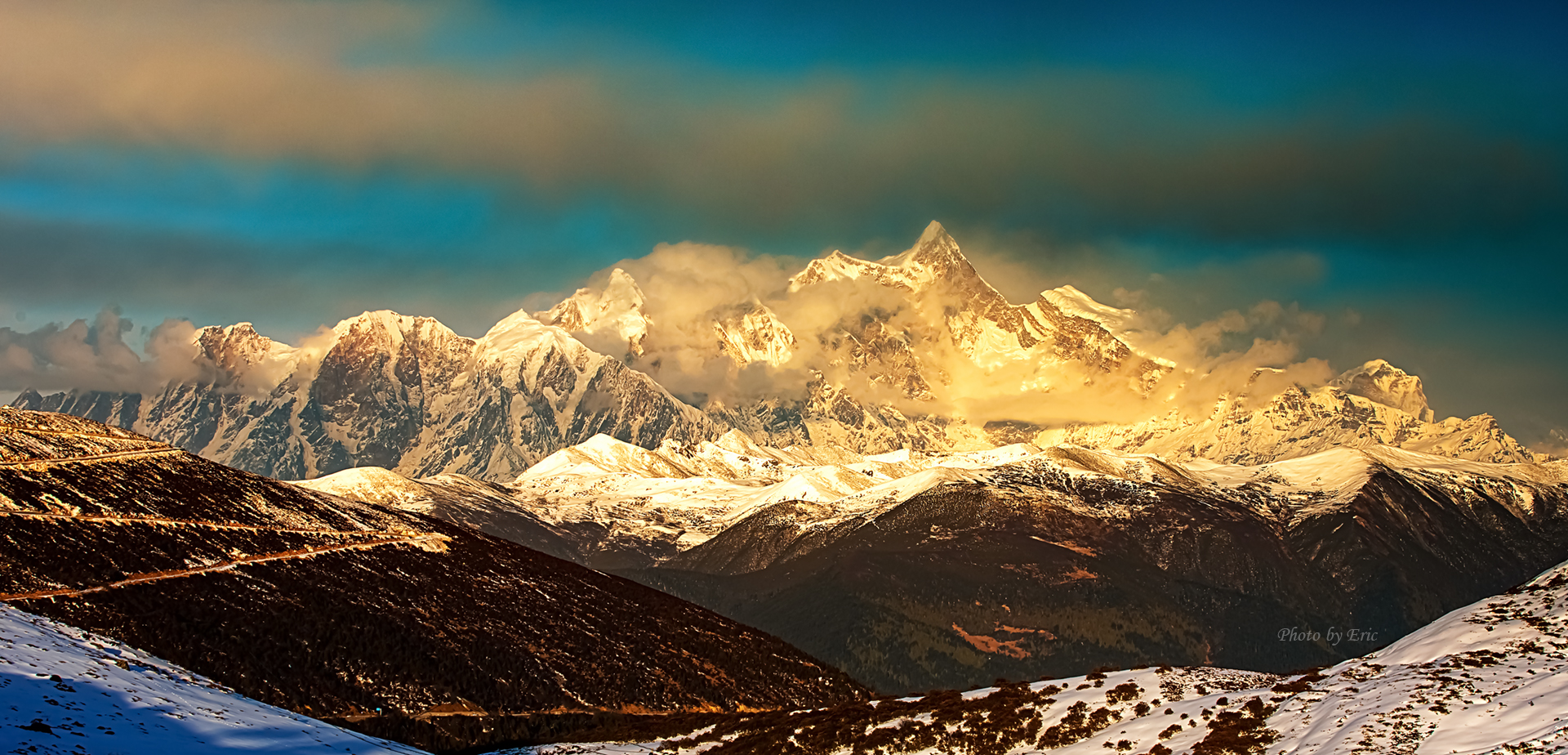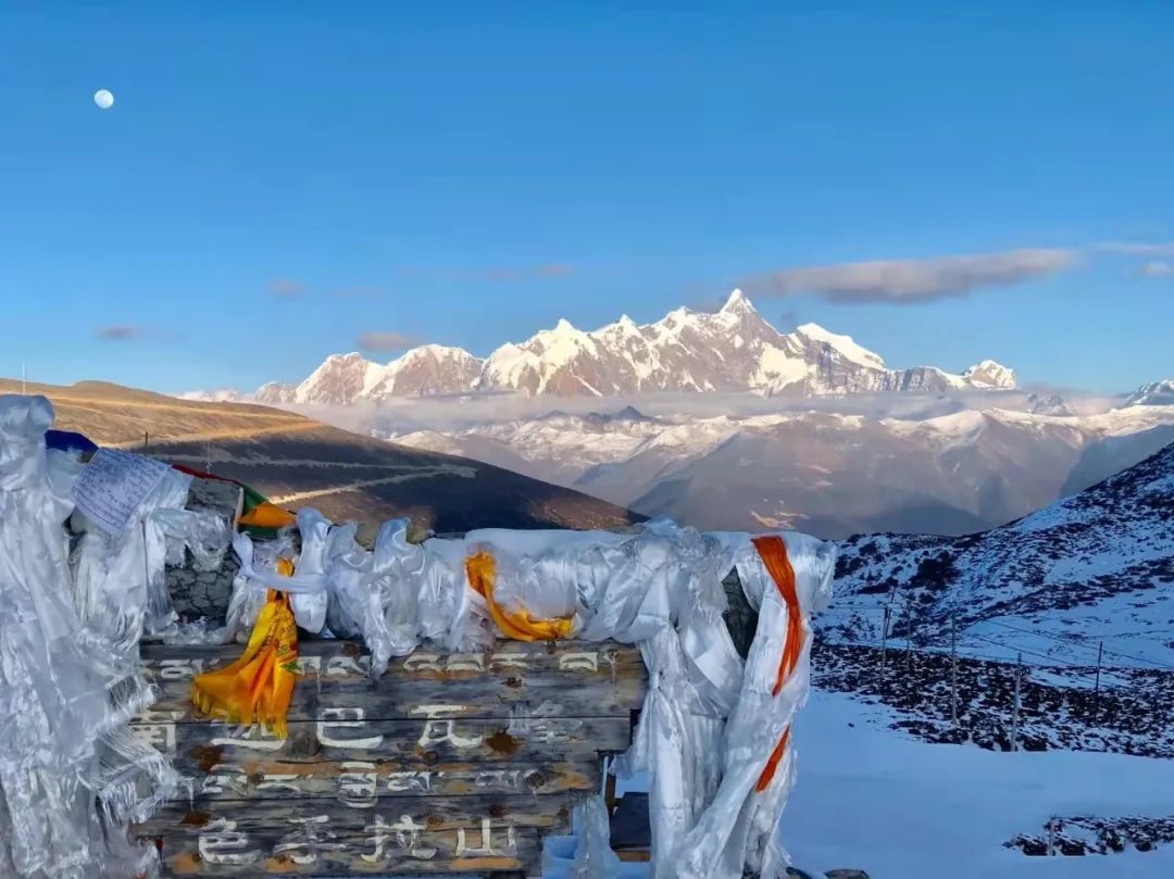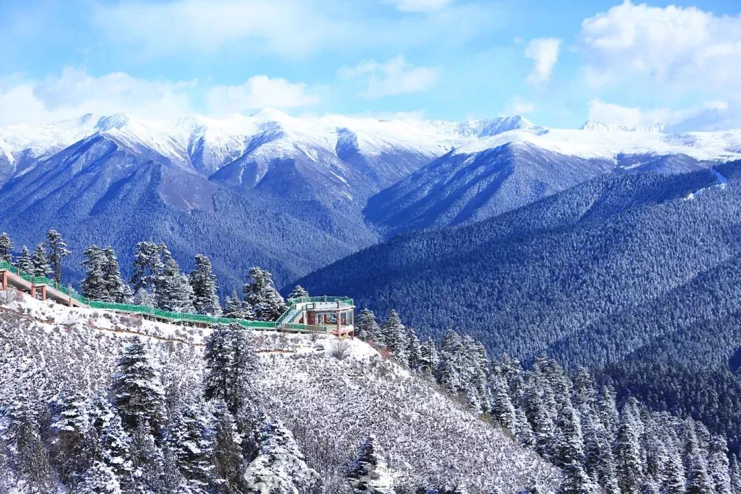 整个景点如诗如画,周边雪山林立,沟内森林葱笼,林间还有整齐如人工修剪般的草甸。春天时分在山口上,容易遇上飘雪时分。
