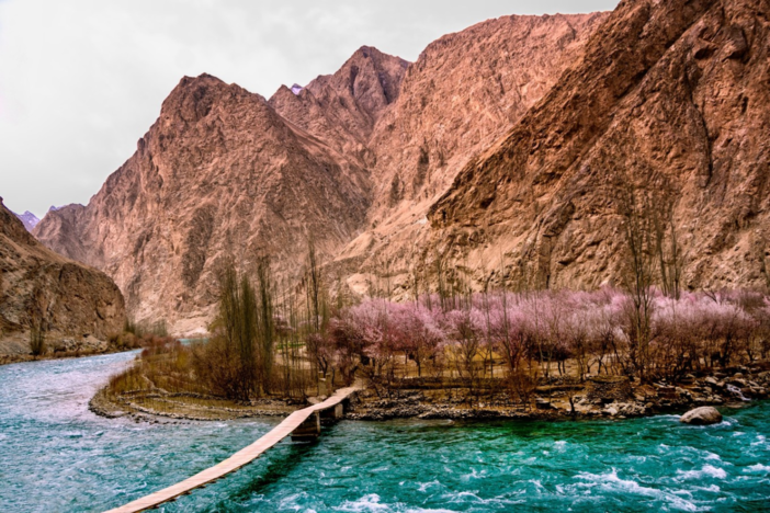 随后前往【库科西鲁克】-杏花吹满头,道路两边,成片的杏花树。后来越往深处,杏花次第绽放,红的,粉的,白的,一树树的花开迷了眼。【塔尔乡幸福五号桥】库克西鲁克塔尔乡杏花村,位于昆仑大峡谷里的“塔莎古道”路旁。“塔莎古道”连接塔什库什尔干县和莎车县,经过阿克陶县塔尔乡、恰尔隆乡,相传为唐玄奘取经东归路,昆仑山巍峨险峻,雪山融水清流激荡,高原杏花姹紫嫣红,塔吉克族风情浓郁,杏花的花期较短,每年从花开到花谢只有18天左右的时间,错过就要等明年咯,晚上入住塔尔乡民宿。