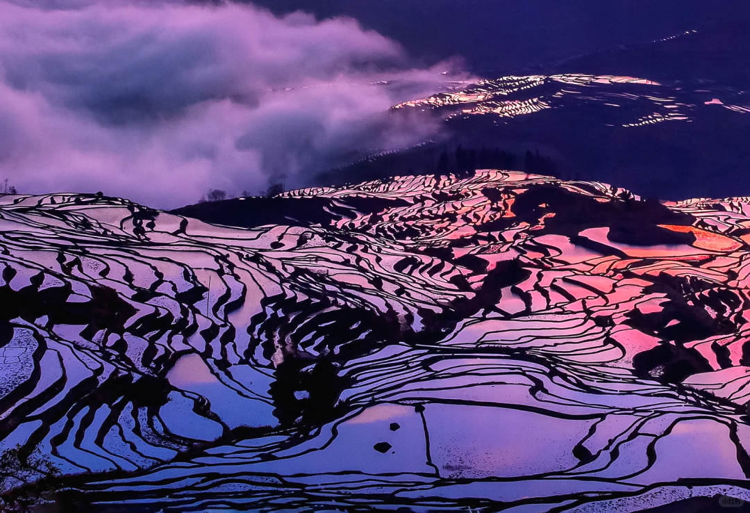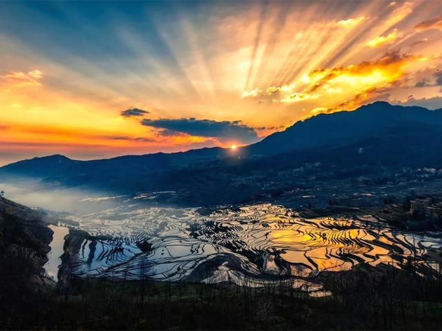 亮点:多依树日出+蓝色梯田+阿者科村蘑菇房+梯田轻徒步+屏边大围山,自然与人文结合!