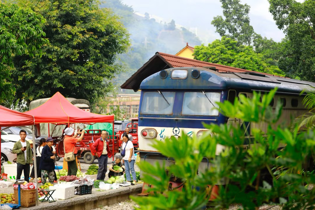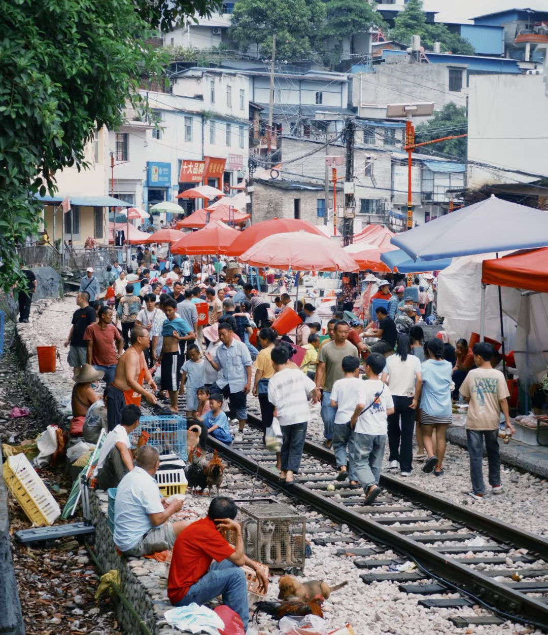 早餐后先前往【白河镇火车集市】(如个别排期对不上周一赶集,我们会特别安排游玩白河镇农贸市场体验当地小镇集市生活+赠送百年滇越-【白寨大桥】,敬请知悉)。不用去泰国和印度,这里是中国仅存的唯一也是最后一个火车市集。滇越铁路的米轨火车,已经在云南穿行了百年,每天两趟会从这里经过,附近的少数民族会着民族服装,背着箩筐,仅每周一上午会来到这里赶集。当早上的火车从这里缓缓驶过这里,火车➕集市的永恒瞬间就会被定格在那一刹那。很多老人在火车轨道集市上售卖水果、蔬菜以及家禽等,非常热闹。这里是淳朴的、真实的云南少数民族聚集地,感受到不一样的生活气息。