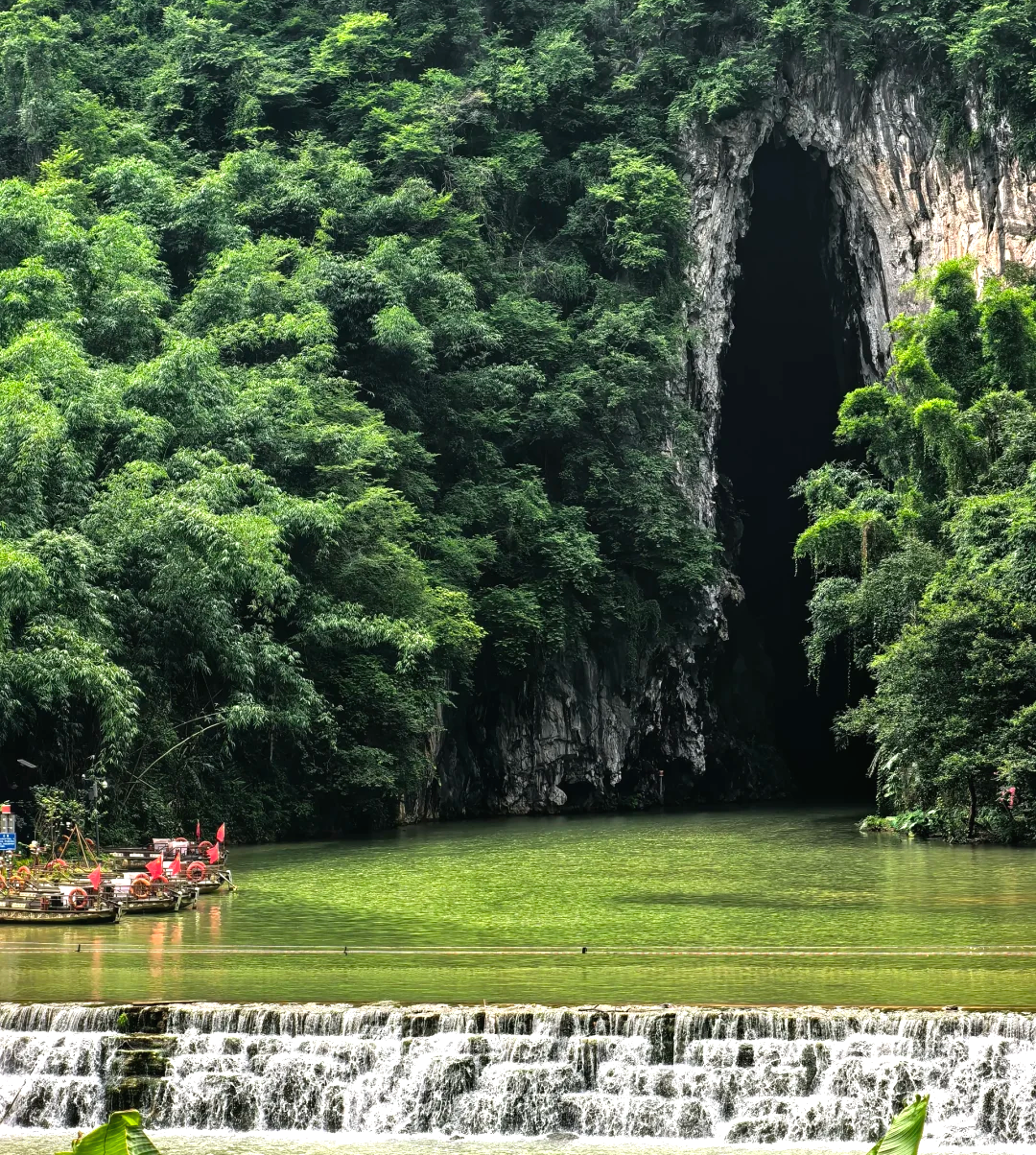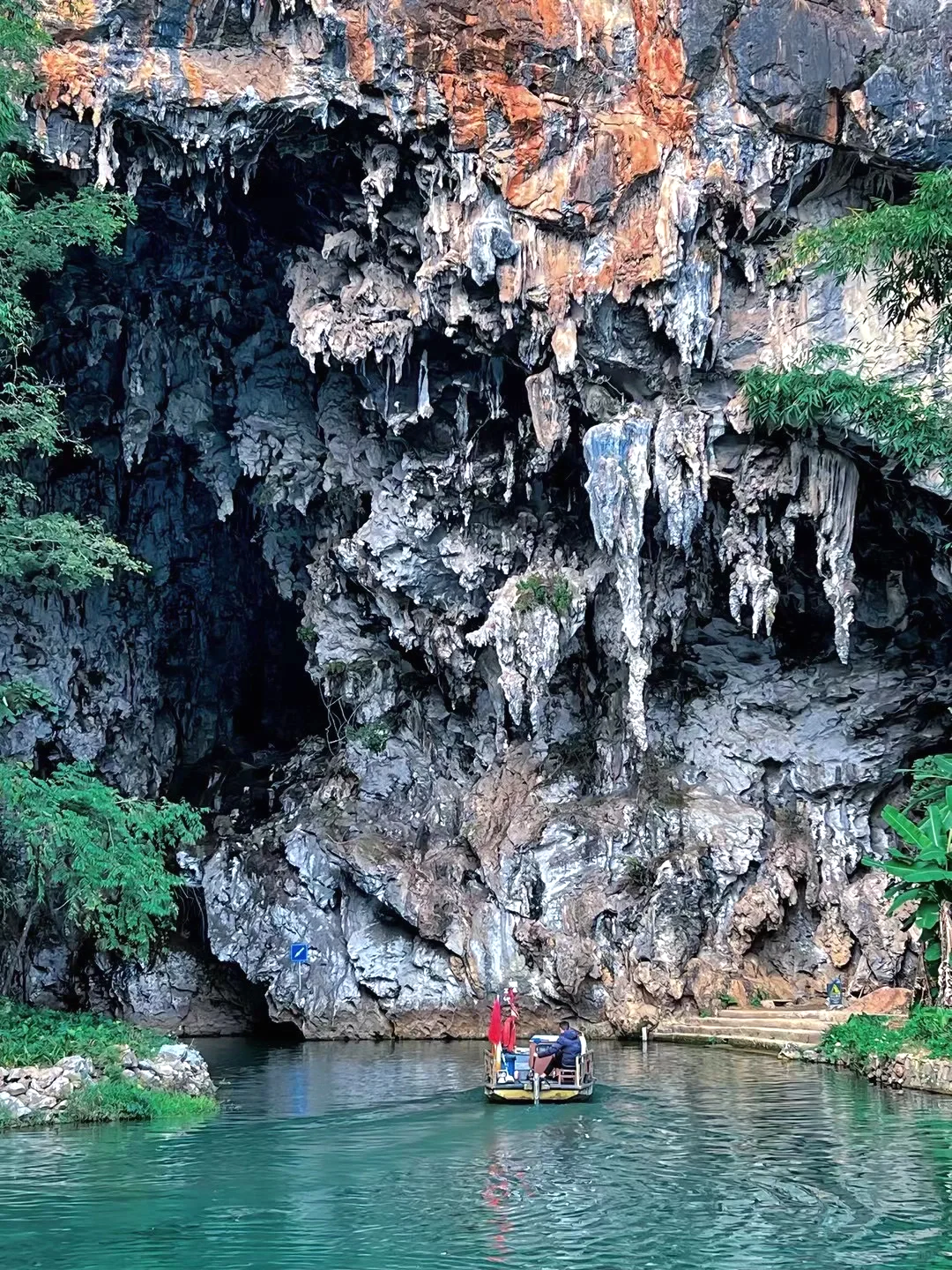 早餐后我们前往广南【世外桃源坝美景区】,约11点左右到达景区。先乘小船穿过约1公里的水洞,映入眼帘的是别有洞天的幽静秀美,四周群山环抱,八座山峰一字排开如一副水墨画卷!进入这里要先坐一段电瓶车,然后再坐小船进入连接村子与外界的长达一公里的幽暗水洞,当那个与世隔绝的壮族村寨出现在眼前时,你一定会猛然想到陶渊明笔下的世外桃源,因为一切情境与桃花源记竟是如此的相像。