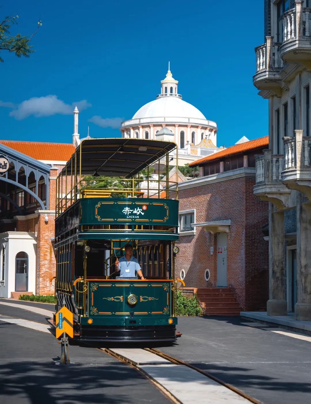 10:30到达【广东赤坎古镇侨乡国际旅游度假区】,以历史骑楼街区作为核心,打造集观光游览、休闲度假、商务会展、文化创意、和古镇体验功能为一体的综合休闲旅游度假区、世界级旅游目的地。度假区总规划面积约 120 万平方米,坚持在保护的基础上进行活化利用,以历史场景为脉络,形成古镇集华侨历史文化、商业综合、舒适休闲度假和独特的岭南骑楼建筑景观的聚集带,一河两岸独特的中西合璧建筑魅力,融入古镇繁荣的市井生活方式,为游客带来穿越时空的超凡体验。