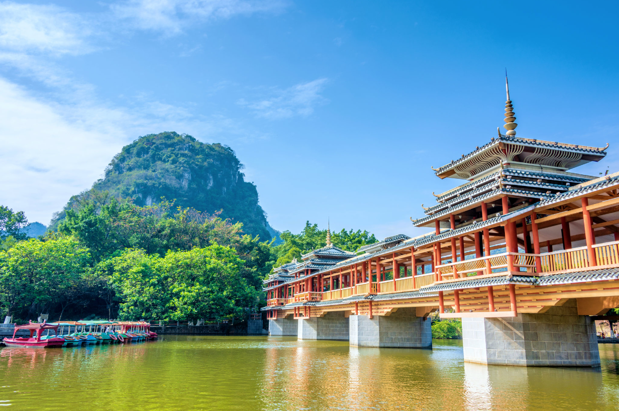 出发地乘车前往柳州,抵达柳州后前往【鱼峰山公园】是当地著名的自然景观和历史文化景点。公园以鱼峰山为核心,集自然风光、历史文化和休闲娱乐于一体,是市民和游客喜爱的游览胜地.每年农历三月三,当地会举办盛大的歌圩活动,来自各地的歌手在公园内对唱,展示壮族山歌的魅力。