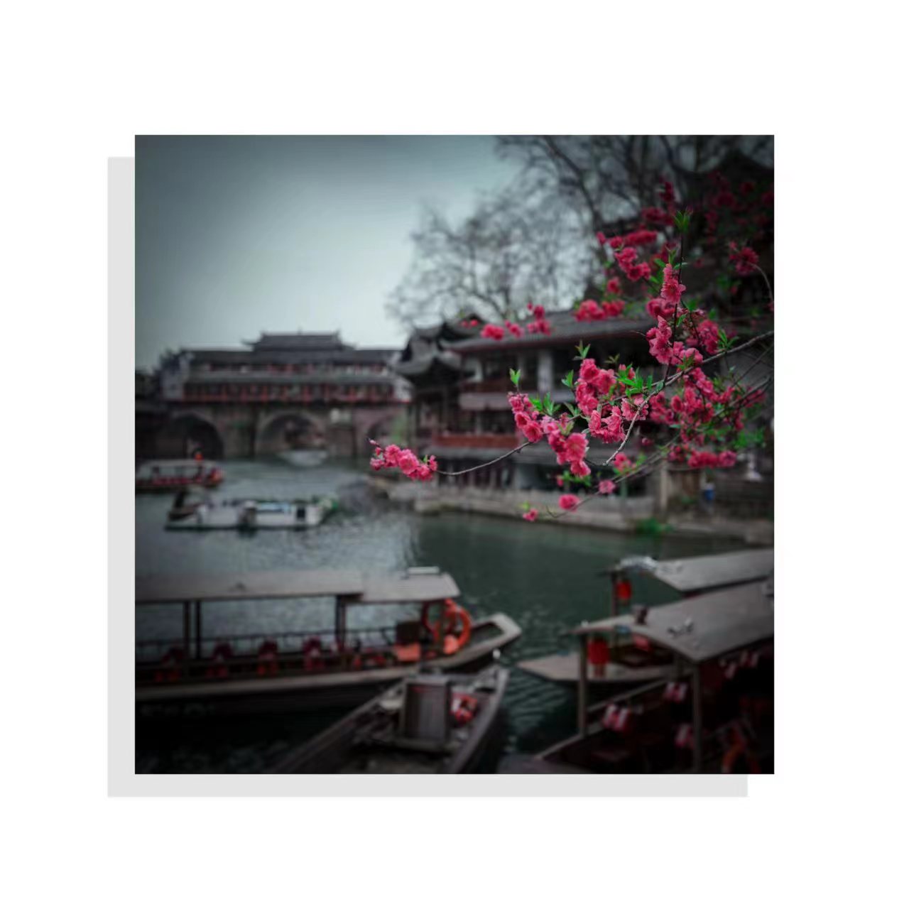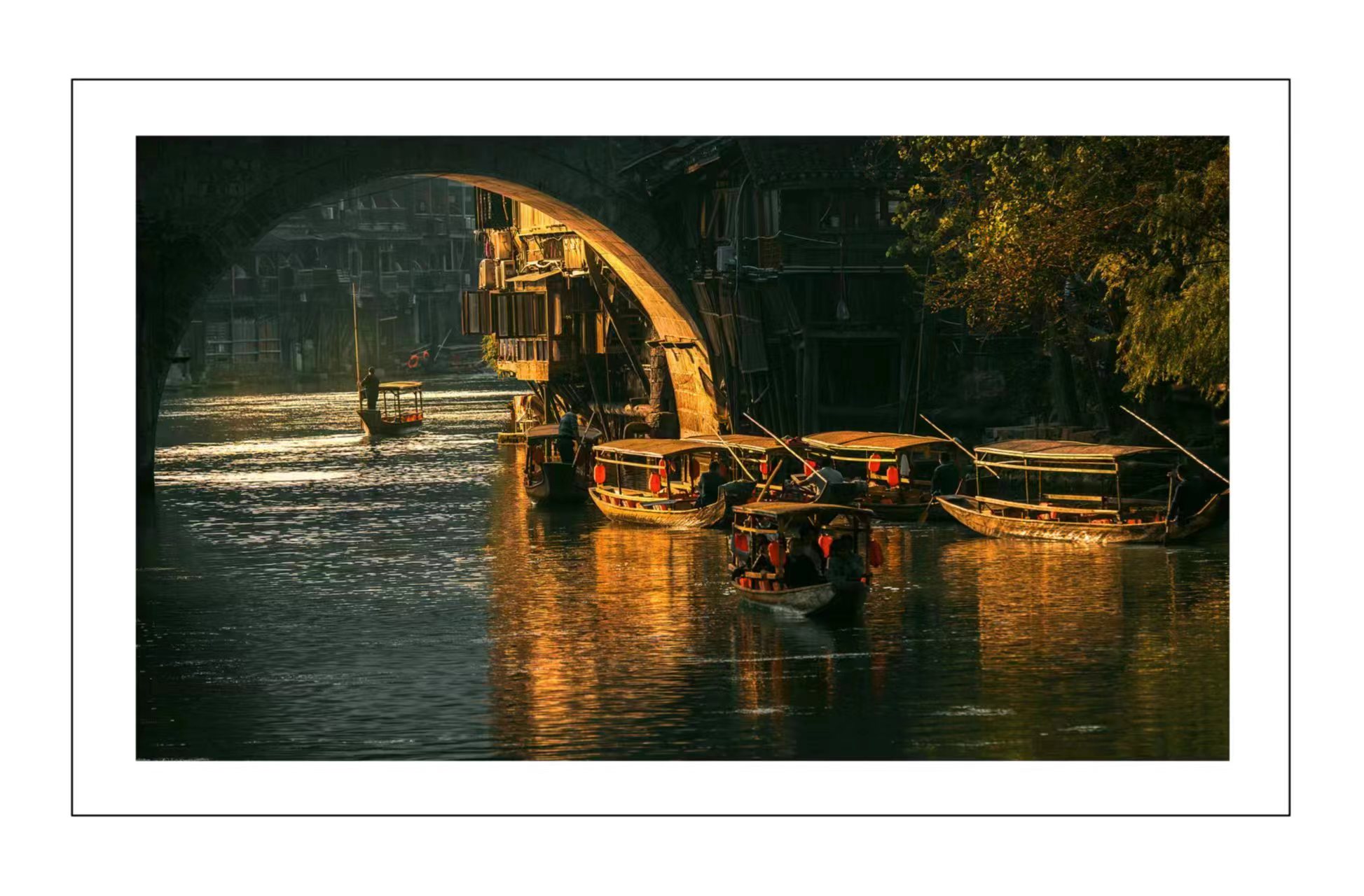 拿起相机,记录下光影世界中凤凰古城的美丽。清晨的第一缕阳光洒在青石小巷上,石板路上的斑驳光影交错,古建筑的瓦片和木雕在晨光中闪烁着历史的故事。