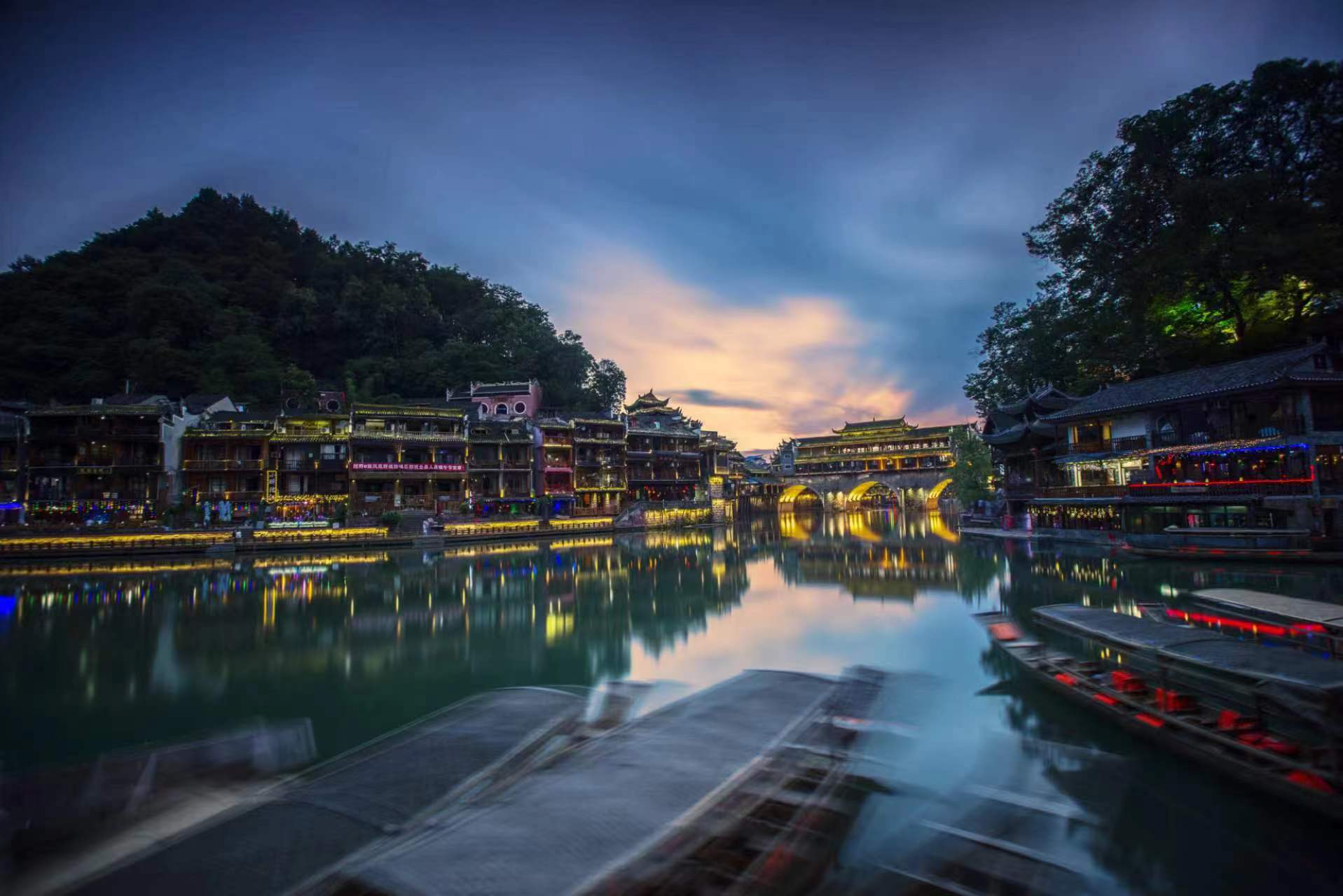 傍晚18:30开始拍摄闻名中外的凤凰夜景,晚住凤凰古镇。